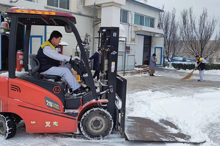 北普公司保供首都多家三甲医院医用氧和航空航天、微电子等重点产业特种气体供应,为确保正常供应万无一失,早在大雪前夕,公司专门对运输产品车辆驾驶人员进行专项培训。对车辆提前进行检查,针对极寒天气,对车辆电瓶、刹车制动等方面进行重点检查,并提前加注适应寒冷天气的燃料,避免大雪天气启动困难、燃油结蜡或者在外抛锚。同时,北普公司安排专人对华腾科技园区包装气项目施工现场开展融雪作业,根据降雪情况进行施工作业调整,停止室外作业,并根据雪情随时做好应急准备。