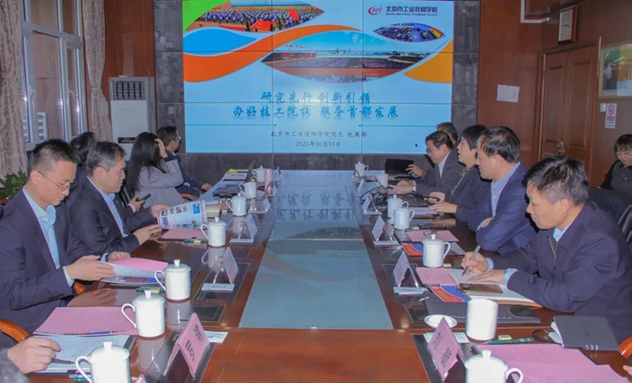 10月19日上午,中化环境公司党委书记、董事长、总经理崔焱一行9人慕名来到北京市工业技师学院,参观了解学院丰硕办学成果,与sunbet申愽官网、学院共商培训合作事项,sunbet申愽官网党委书记、董事长王国华,党委副书记吴瑞峰及相关部室负责人,技师学院相关领导、教师一同参观、洽谈。