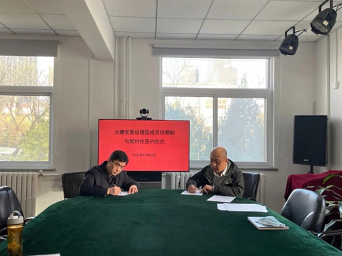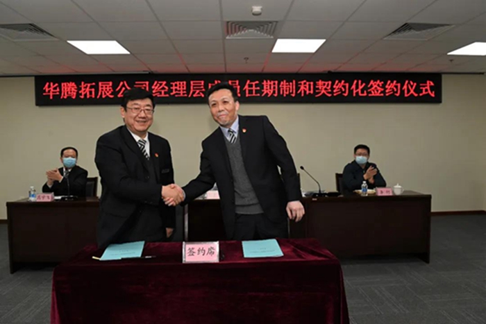 11月底,华腾橡塑、北搪公司分别组织召开经理层成员任期制、契约化管理协议签署会议,单位法定代表人分别与本单位的经理层成员、高管人员签署任期制、契约化协议。